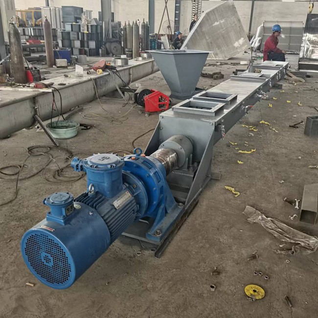 客戶定制螺旋輸送機(jī)生產(chǎn)制作完成,聚氨酯內(nèi)襯,防爆變頻電機(jī),一體成型螺旋葉片。