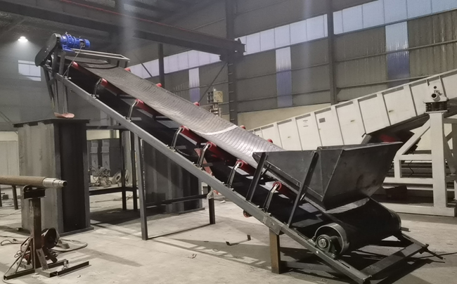 帶式輸送機(jī)又稱皮帶機(jī),應(yīng)用廣泛,輸送產(chǎn)量大。本臺(tái)設(shè)備是寬1.2米,長(zhǎng)8米的帶式輸送機(jī),輸送角度27度,采用人字形輸送帶,摩擦力強(qiáng)。用于輸送生活垃圾以及建筑垃圾。