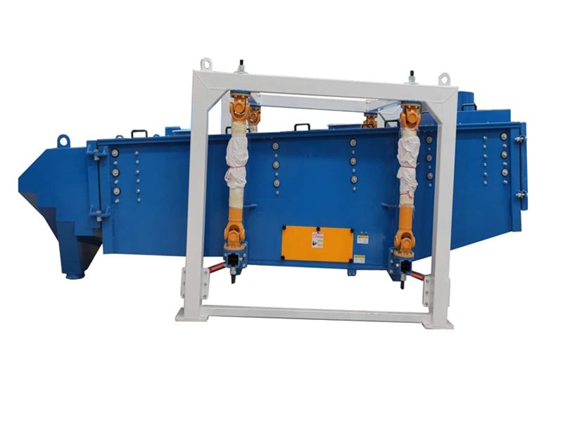 篩機(jī)啟動(dòng)后,篩機(jī)搖動(dòng)體即篩箱在慣性力的作用下做前后往復(fù)運(yùn)動(dòng),篩箱帶動(dòng)篩面作周期性搖動(dòng),從而使篩面上的物料隨篩箱一同作定向跳躍式運(yùn)動(dòng),期間,小于篩面孔徑的物料通過篩孔落到下層,成為篩下物,大于篩面孔徑的物料經(jīng)連續(xù)翻滾跳躍運(yùn)動(dòng)后從排料口排出,從而完成篩分工作。